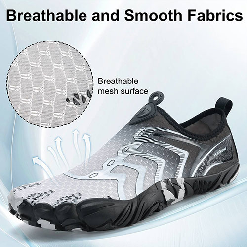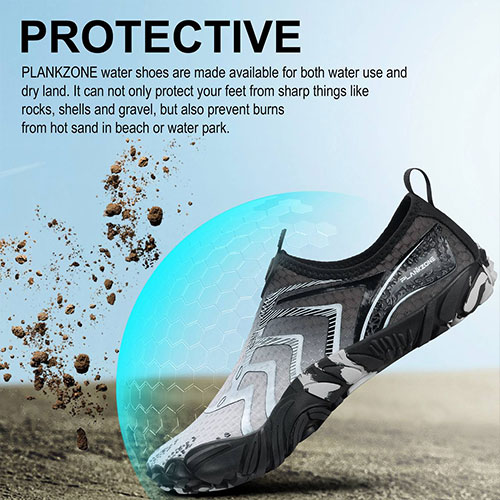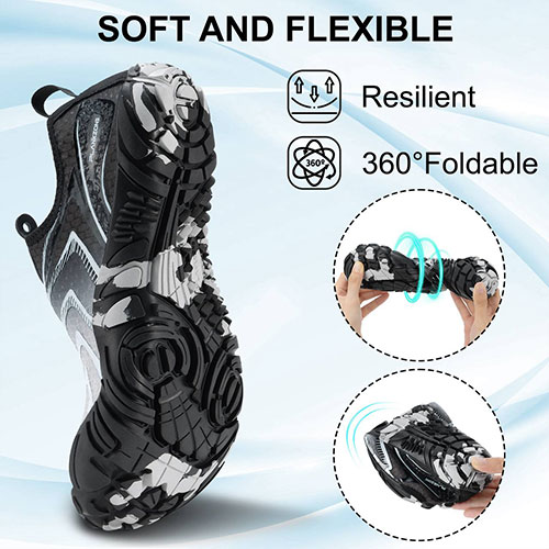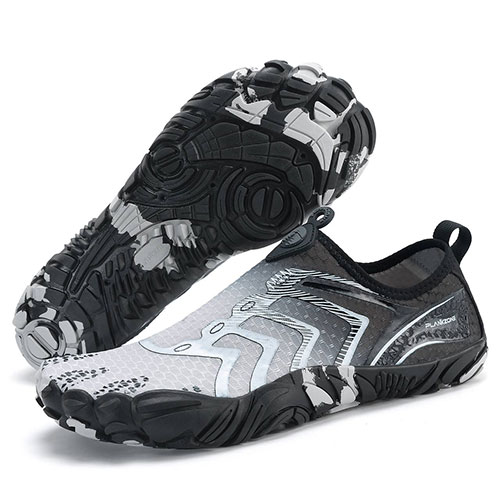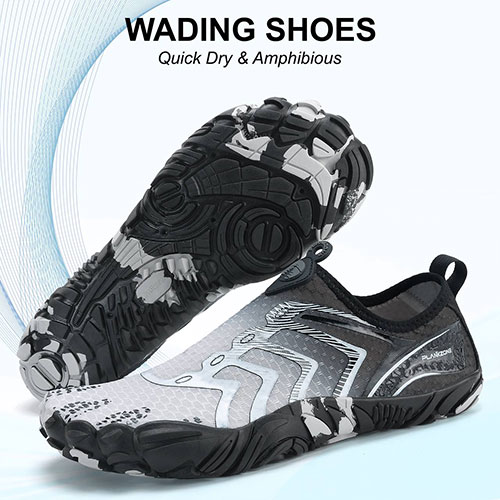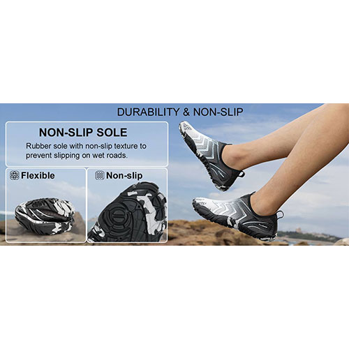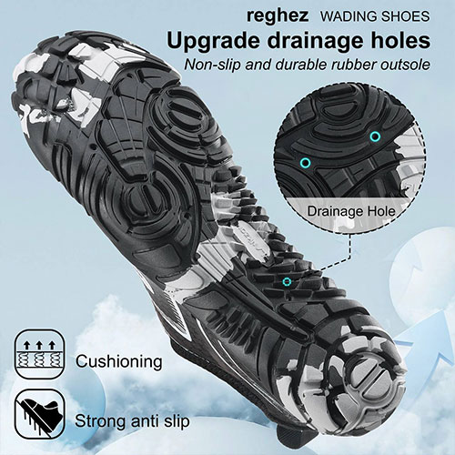 • زیره ضد لغزش: کف لاستیکی مقاوم با چسبندگی بالا، مناسب برای سطوح مرطوب و لغزنده مانند صخره، ماسه و کف رودخانه.